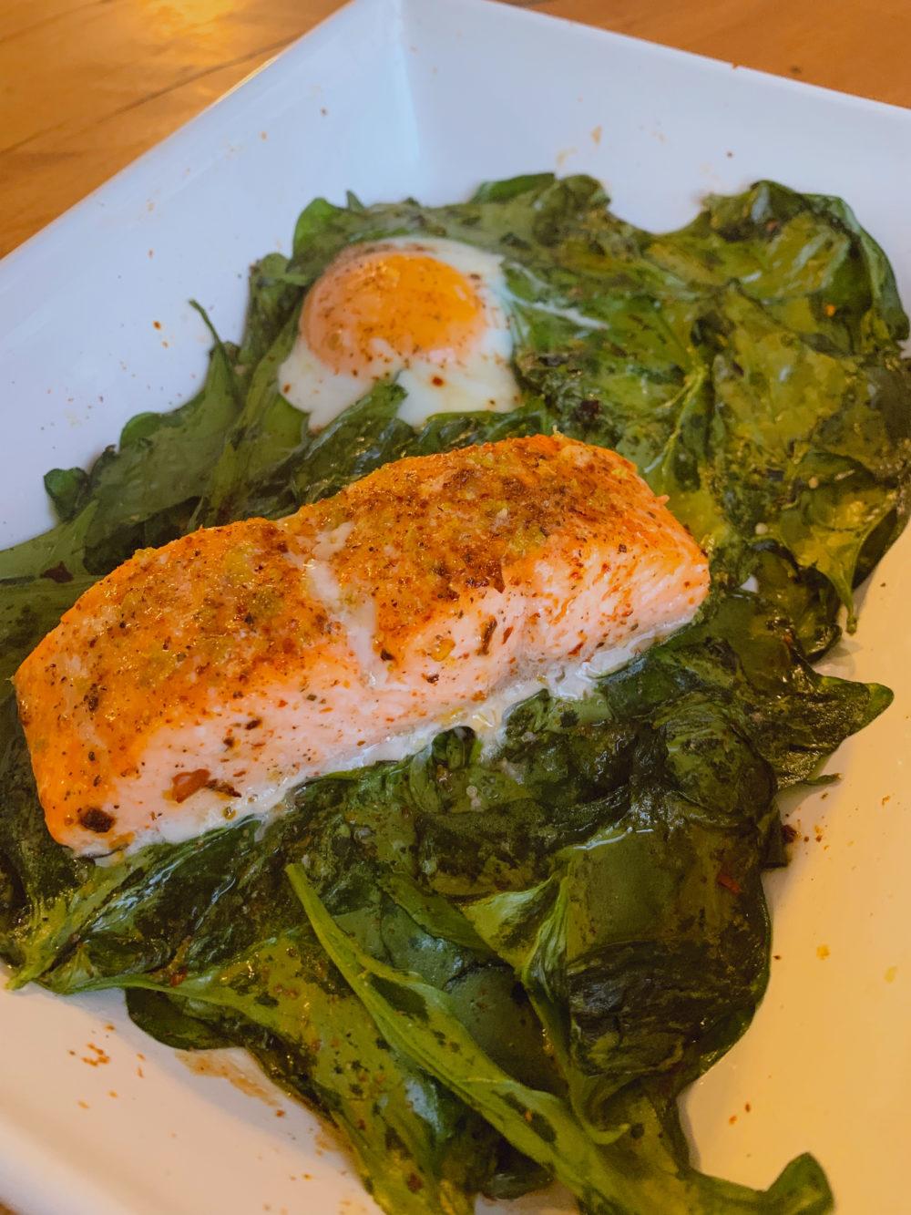 SALMÃO EM CAMA DE ESPINAFRE COM OVO (MEGA PRÁTICO E FÁCIL!)